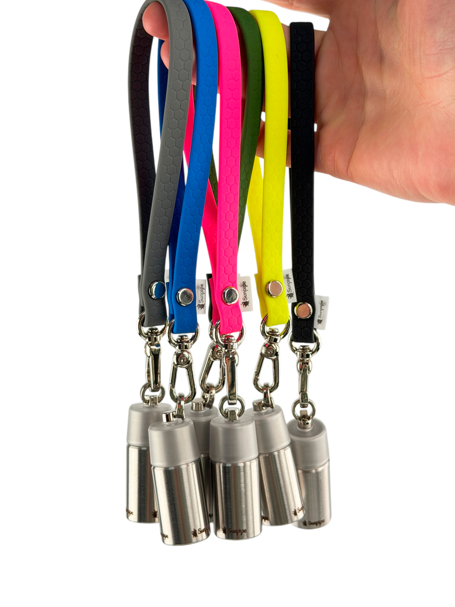 У комплект входить короткий силіконовий шнурок з карабіном, який дозволяє закріпити мундштук на ключах або прикріпити його до елементів вашого одягу. Запакований у стильний напівпрозорий зип-пакет.